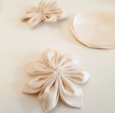 Elle le découpe, le plie et le façonne pour créer des fleurs uniques qui ornent ses créations. Léger et souple, ce papier offre une grande liberté de formes et de volumes, donnant à chaque pièce un caractère singulier et élégant.